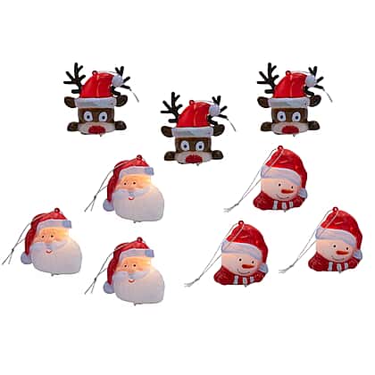 Bring a joyful glow to your festive décor with this set of 9 light up novelty fun characters - Santa , Reindeer and Snowman (3 each). Each character is designed with charming details and a playful finish, making them perfect for brightening Christmas trees, shelves or table displays. Battery operated for ease, they’re lightweight, durable and simple to place wherever you’d like a magical touch. Whether you’re hosting family gatherings or adding festive accents around your home, these little characters promise to spread cheer and create a warm, welcoming atmosphere that captures the spirit of the season beautifully.