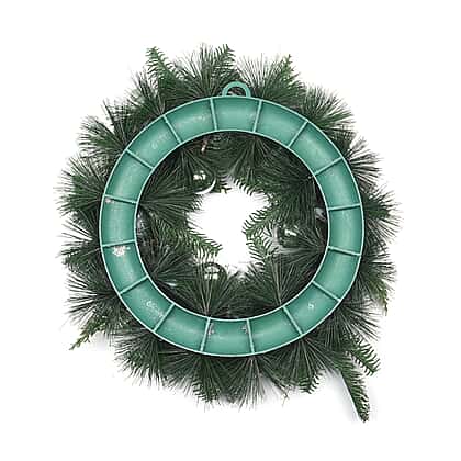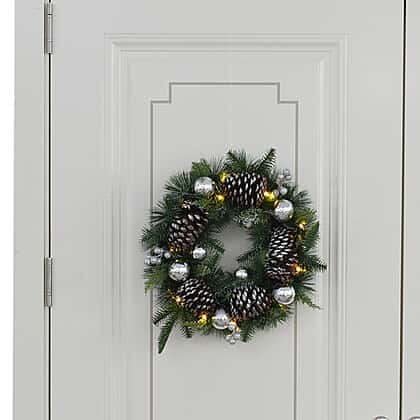 Decorative Christmas Wreath (45 Cm) Embellished with Silver Balls, Pine Cones and LED String Light Powered by 2xAA Battery (not included)