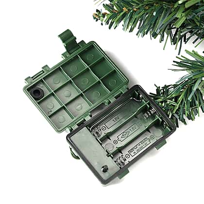 • Adorned with red berries, pine cones, and 35 warm LED lights.