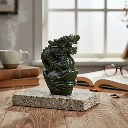 Limited Edition Handcrafted Serpentine Jade Figurine - Dragons are Considered a Symbol of Good Luck, Power, Wisdom and Protection