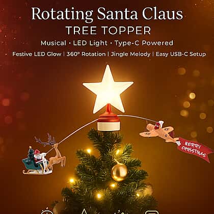 Make the star of your tree the main event. This animated topper pairs a faceted LED star with a rotating arm. Add Santa's classic sleigh or a retro plane. pulling a “Happy Christmas” banner. Plug into any Type‑C port for instant glow; a built‑in melody brings the nostalgia, while the adjustable clamp secures neatly to most tree spines for a polished finish. Equal parts spectacle and charm, it turns trimming the tree into a front‑row show.