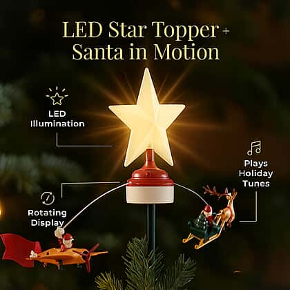 Rotating Santa Claus in Sleigh or Plane Figures Christmas Tree Topper with Musical LED Light-Up, Type-C Powered