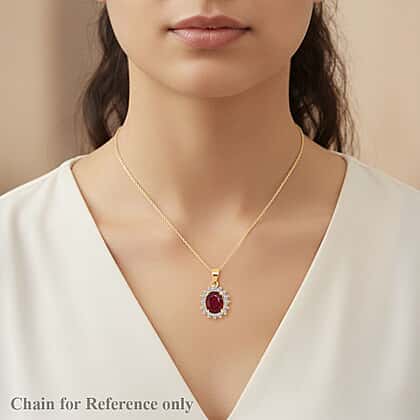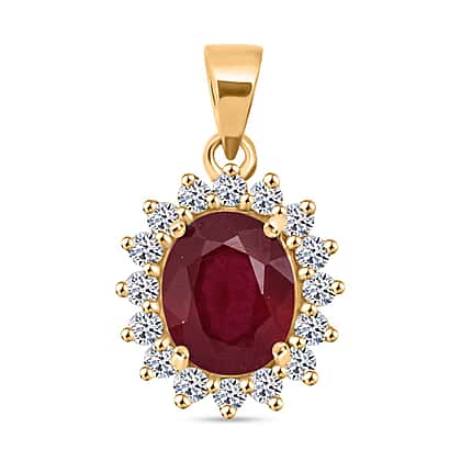 OTO - Luxuriant African Ruby & Lab Grown Diamond Pendant in 18K Vermeil Yellow Gold Plated Sterling Silver 4.03 Ct.