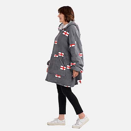 This super soft Sherpa blanket hoodie is perfect for your winter wardrobe collection. It is made from warm and comfortable fabric, featuring a hood and front pocket.