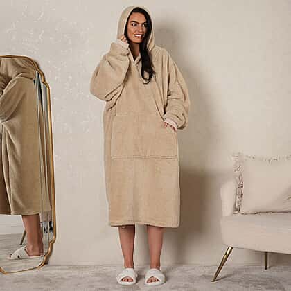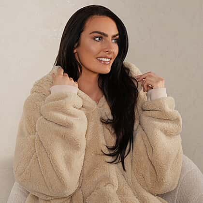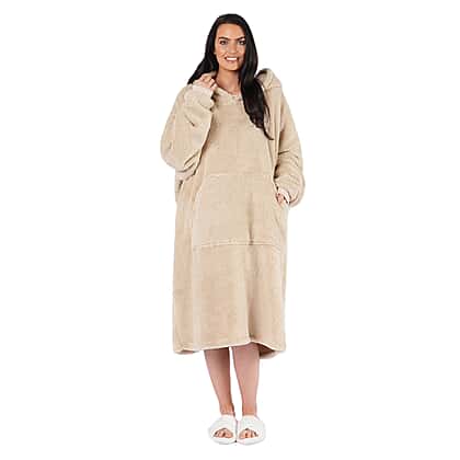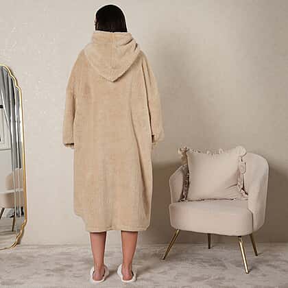 Oversized Sherpa Fleece Teddy Hoodie-Blanket - Beige