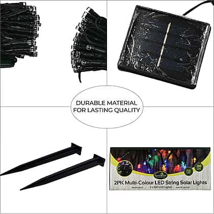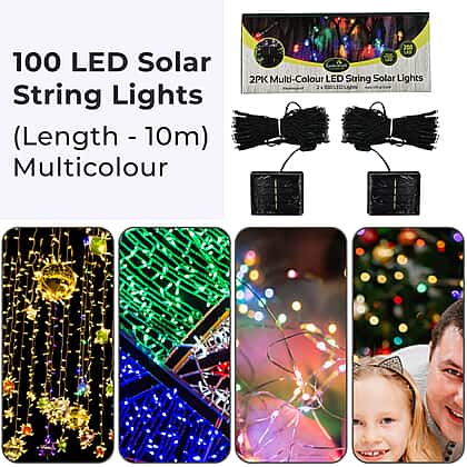 Pack of 2 - 100 LED Solar String Lights (Length - 10m) - Multicolour