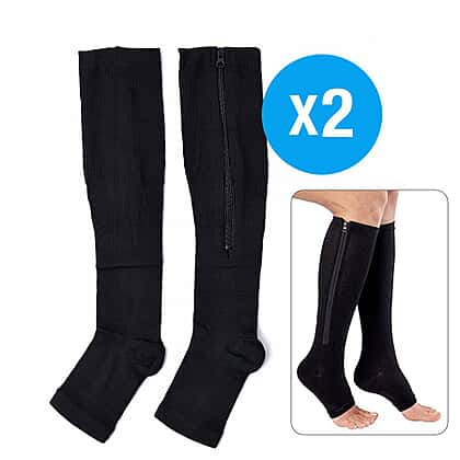 Pack of 2 Pairs Compression Zipper Socks - Black