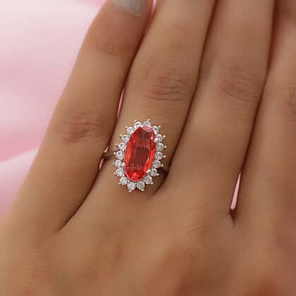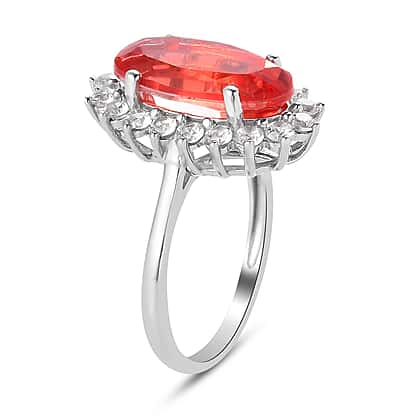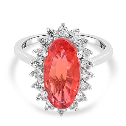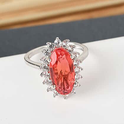 4.66 Ct. Padparadscha Triplet Quartz and Natural Cambodian Zircon Ring in Platinum Plated Sterling Silver