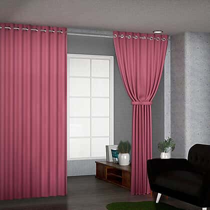 Set of 2 Blackout Curtain with 8 Metal Rings for Living Room, Bedroom and Home Décor - Pink
