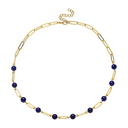 Lapis Lazuli Paperclip Necklace Size 20 in Yellow Gold Tone
