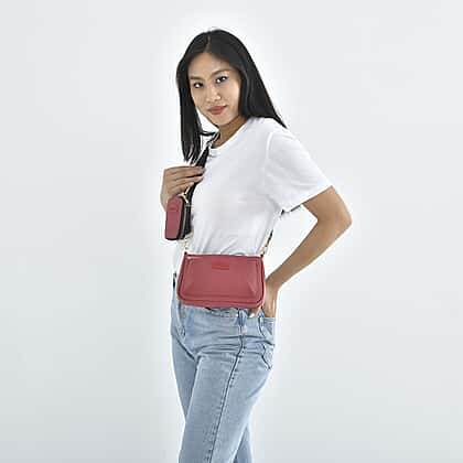 Passage - Faux Leather Crossbody Bag with RFID Protection and Removable Coin Pouch - Burgundy