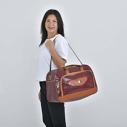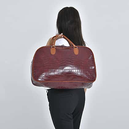 Passage Croc Pattern Travel Bag (Size 55x21x34 Cm) - Burgundy & Brown