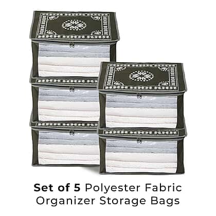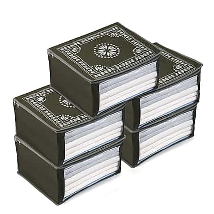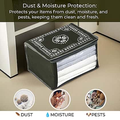 Patterned Storage Box (Size 51x43x22 cm) - Olive Green & Navy
