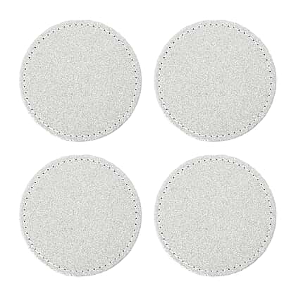 Add a sprinkle of festive charm to your table setting with the Set of 4 Round Glitter Placemats and matching Coasters. Exuding elegance, these shimmering accents protect surfaces while offering a stylish stage for your dishes and drinks. Perfect for any celebration, they're both functional and fabulously chic. Ensure every meal sparkles and lets conversations flow over their radiant glow.