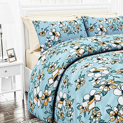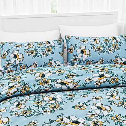 Add a cheerful charm to your bedroom with this Hush Heaven 3-piece double duvet set in a vibrant floral blue print. Featuring a 200x200 cm duvet cover and two matching 50x75 cm pillowcases, this set is crafted from soft, breathable fabric for year-round comfort. The playful white, yellow, and green flower pattern stands out beautifully on the sky blue base, adding colour and freshness to your space. Neatly packed in a matching self-fabric storage bag, this set also makes for a thoughtful gift. Designed for convenience, style and comfort, it's a bright upgrade for everyday bedding you’ll love coming home to.