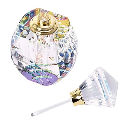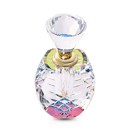 Oval Carved Crystal Refillable Perfume Bottle with Colourful Base(Size 12.5x4cm)
