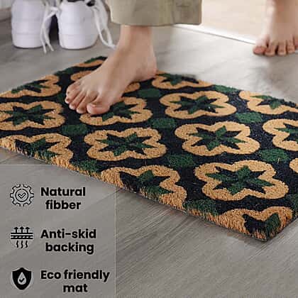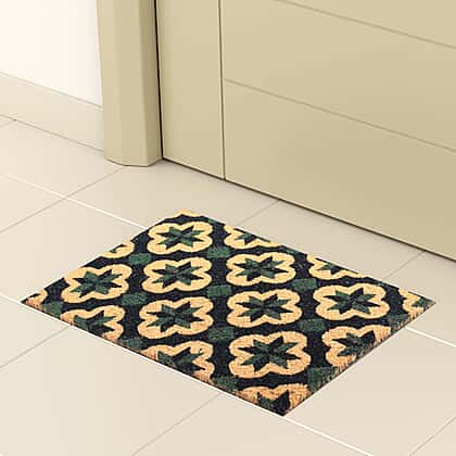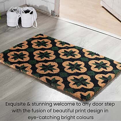 PVC Backed Coir Natural Printed Rug and Door Mat (Size 40x60 cm) - Multi Colour