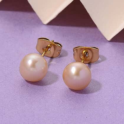 Peach Freshwater Pearl Beads (7-8MM) Earring with Push Back in Gold Tone