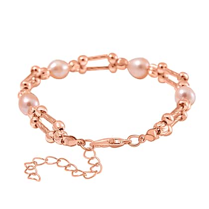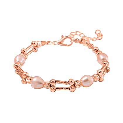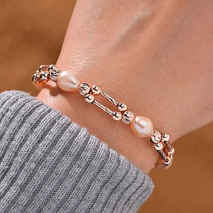 Peach Fresh Water Pearl Bracelet (Size -7.5-2) in Rose Gold Tone 10.00 Ct.
