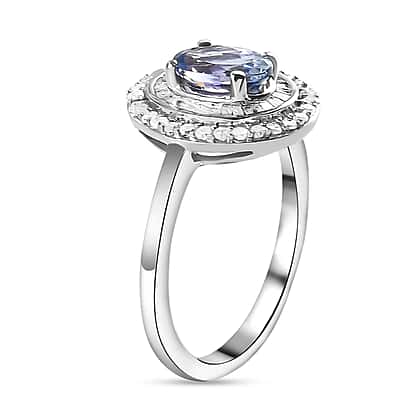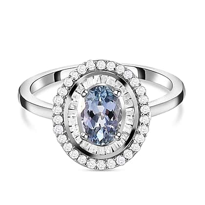 Peacock Tanzanite and Diamond Ring in Platinum Overlay Sterling Silver 1.24 Ct.