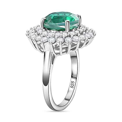 Peacock Triplet Quartz, White Zircon Double Halo Ring in Rhodium Plated Sterling Silver