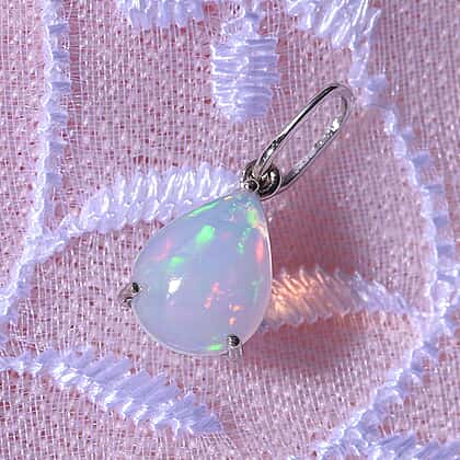 9K White Gold Ethiopian Welo Opal Solitaire Pendant 1.00 Ct.