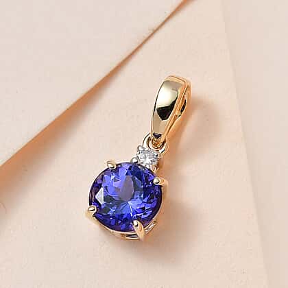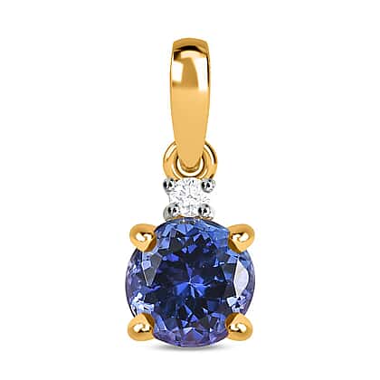9K Yellow Gold Tanzanite ,Moissanite Solitaire Pendant 1.23 Ct.