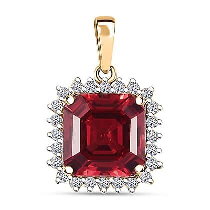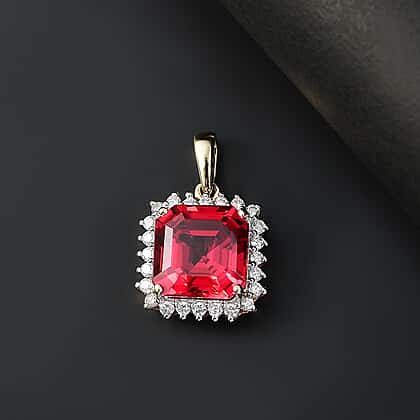10K Yellow Gold AAA Lab Grown Padparadscha Sapphire, Lab Grown Diamond Main Stone With Side Stone Pendant, Gold Wt.1.95 Gms 5.860 Ct.