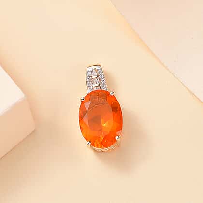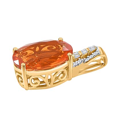 14K Yellow Gold AAA Salamanca Fire Opal & White Diamond Pendant 4.08 ct, Gold Wt. 2.75 Gms