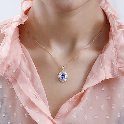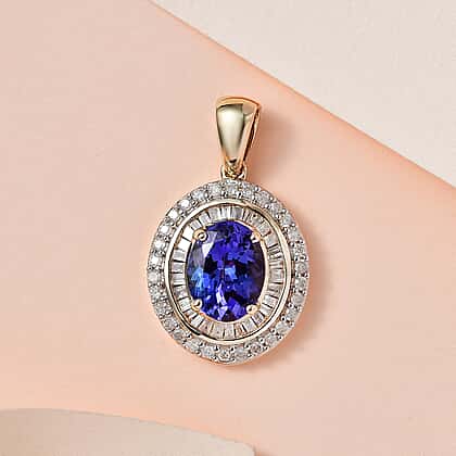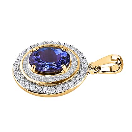 14K Yellow Gold Tanzanite & Diamond Pendant 2.62 Ct