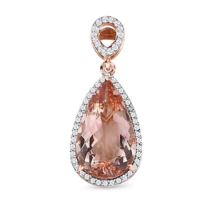 18K Rose Gold AAA Morganite and White Diamond SI GH Solitaire Pendant 7.59 ct