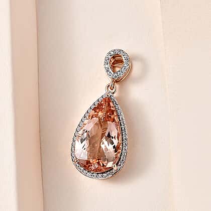 18K Rose Gold Morganite & Diamond (SI-G-H) Halo Pendant 7.60 Ct