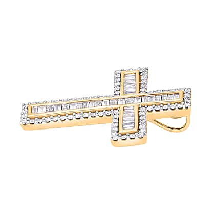 18K Yellow Gold Diamond (GH-SI) Cross Pendant 1.01 Ct, Gold Wt. 4.36 Gms