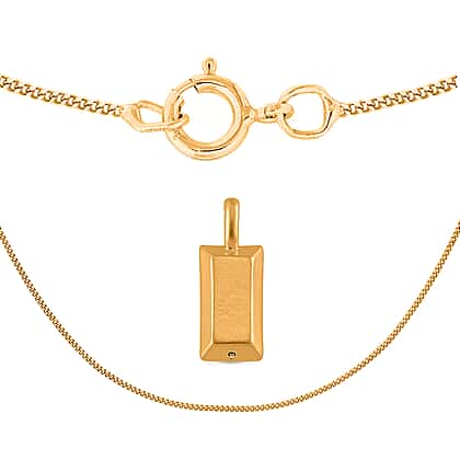 24k Yellow Gold Bar Pendant with 9k Yellow Gold Diamond Cut Curb Necklace