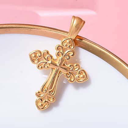 - This cross pendant in 24K gold has a unique tone and a striking lustre