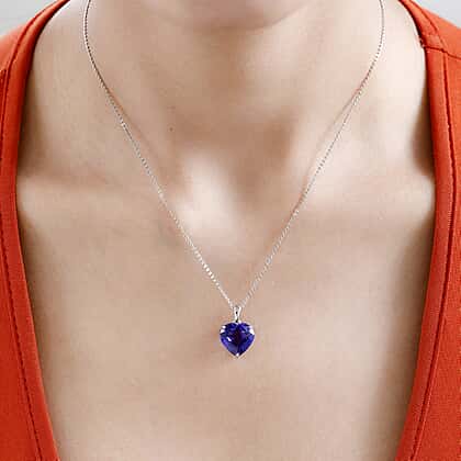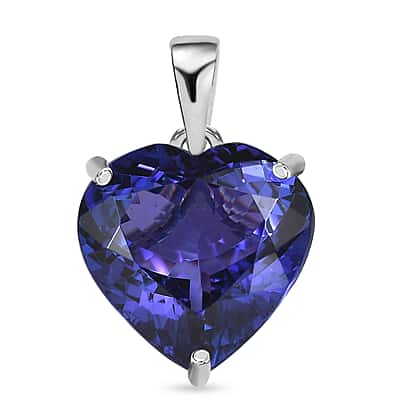 950 Platinum AAAA Tanzanite Heart Pendant 6.12 Ct