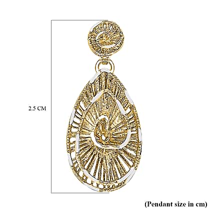 9K 2 Tone Gold 11.5mm x 25mm Lace Style Swirl Teardrop Pendant
