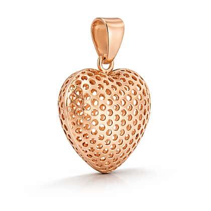 9K Rose Gold 20mm x 20mm Mesh Heart 20mm x 25.5mm Pendant