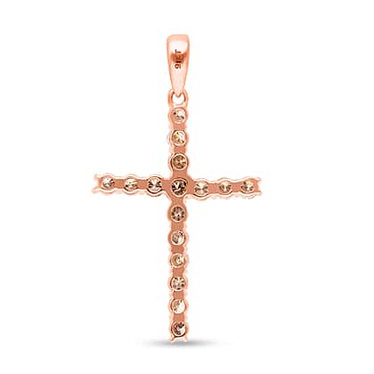9K Rose Gold Natural Champagne Diamond Cross Pendant 1.08 Ct