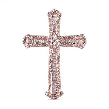9K Rose Gold SGL Certified Natural Pink Diamond Cross Pendant 0.60 Ct.