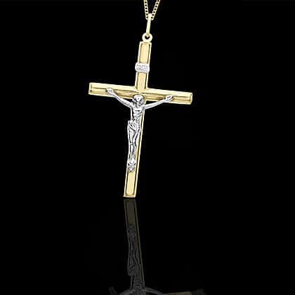 9K 2 Colour Gold 30mm x 47mm Crucifix Cross Pendant