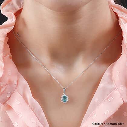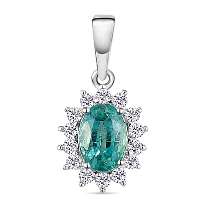 9K White Gold AAA Kagem Zambian Emerald and Diamond I3 GH Halo Pendant 1.04 Ct