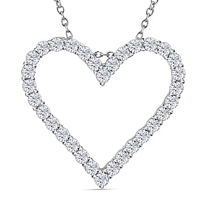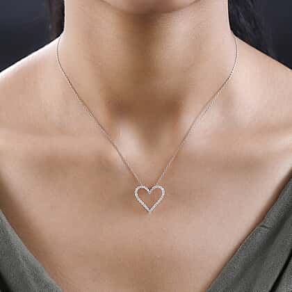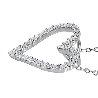 9K White Gold & Diamond Heart Pendant with Chain (Size 20) in Rhodium Overlay 0.50 Ct.