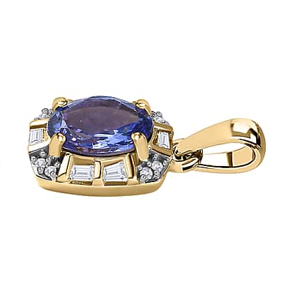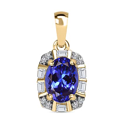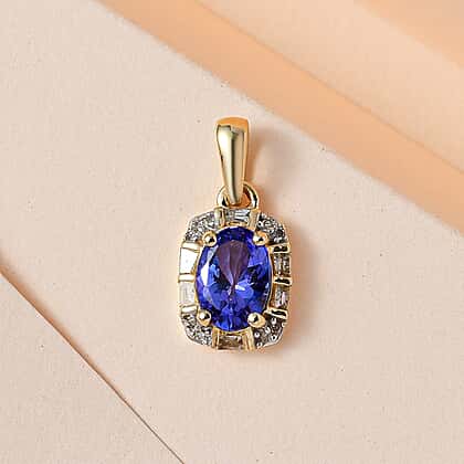 9K Yellow Gold Tanzanite and Diamond Pendant 0.83 Ct