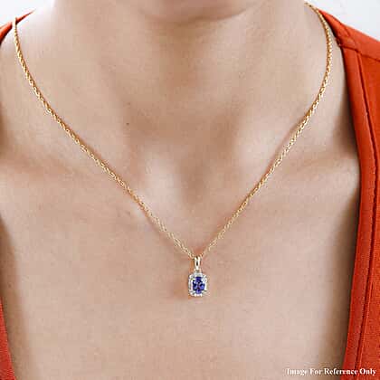 0.83 Ct AA Tanzanite and Diamond Halo Pendant in 9K Yellow Gold