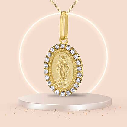 Oval Holy Mary With Cubic Zirconia Pendant 9K Yellow Gold