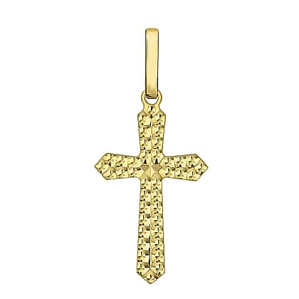 Express your faith with this cross pendant that makes a special gift for the holiday season. The 9K yellow gold embossed cross pendant is crafted in 0.28 grams of gold and measures 11mm X 24mm. An embossed finish lends a glimmering finish to the pendant, while a solid bail keeps it securely held within a chain.