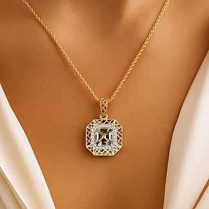 2.24 Ct. Turkizite, White Diamond Halo Pendant in 9K Yellow Gold (I2-GH)