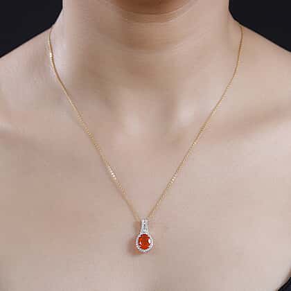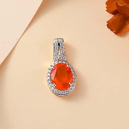 9K Yellow Gold AAA Cherry Fire Opal, Moissanite Halo Pendant 1.77 Ct