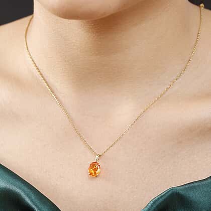 9K Yellow Gold AAA Crimson Fire Opal Pendant 1.94 Ct.